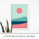 This modern sun and sea landscape print is minimalist, stylish and cute. The turquoise, blue and pink colours can be customised to suit your interior decor.