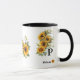Personalised first name and initial sunflowers blooms yellow mug on white background, to sip your favourite tea or coffee in style with our sunflower mug. Vibrant yellow flowers that add a cheerful, floral touch to your mornings. This boho, chic, modern mug makes a perfect birthday gift or present for any special occasion.