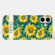 Customize this colorful modern sunflowers on teal painting iPhone 16 plus case with your your name in a trendy modern CAP font in teal on white. It's so beautiful and happy!