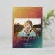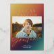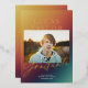 This gorgeous graduation announcement design features modern typography, a horizontal photo, and hip sunset hued gradient background - plus your graduate's name and "graduate" in real pressed foil! Class year, school attended, and future school is flat printed in white. This is a chic yet modern design. You can customise this design even further by adding a photo or additional text to the backer. Foil is available in gold, silver, or rose gold and absolutely shines! Select real foil graduation announcements to add that wow factor!