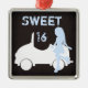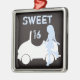 Modern Sweet 16 Christmas Ornament. Features silhouette girl and car in blue, brown and white.
