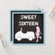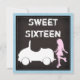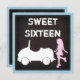 Modern Sweet Sixteen Birthday Invitation. Featuring silhouette girl and car in colours blue, pink, brown and white.