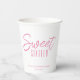 Modern pink Sweet Sixteen paper cups. The text on the cups can be personalised, making it a perfect fit for a girls 16th birthday party celebration. The customisable feature allows for adding names, dates, special messages, or any other relevant information to make the event more special. Matching items available. Please use the message me button below for help with further customisation and special requests.