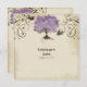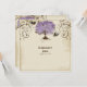 COLOR PALETTE: lavender, lilac and purple, chocolate brown, cream, latte and tan. DESIGN COLLECTION: This is an original graphic design collection created with elegant swirling leaf dot brushes that scroll and flourish the corner of the paper and are the roots, leaves and branches of the tree. It looks like a tree just blossoming out in the spring and early summer. Especially nice for those who love nature and the romantic nature of the outdoors, the tree has a heart in its trunk. There are a pair of vintage love birds that are flying around the tree on the front side. The leaves are a mixture of paint daubs textured with halftone printing pattern and swirling flourishes all through out. The background pattern is an aged, vintage looking texture of cream and tan. Very subtle swirling designs are in the background paper in white and the edges are distressed, aged, and inked in a latte tan border. On the reverse side is larger version of the tree with your monograms in it along with the bride and groom's names and wedding date.