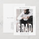 This modern one photo 2023 graduation announcement postcard features a full photo with tall grad typography on the front, and college or school ceremony details with return address on the back.