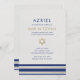 Send out this personalised invitation card to create an exceptional and meaningful mitzvah celebration for your son or daughter. This unique invitation is specially designed for mitzvahs, with a beautiful layout resembling a Jewish tallit in blue and white, paired with an illustration of the Star of David in gold.