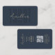 Modern Tarot Reader Card Reading Dark Blue Monogram business card with QR code