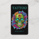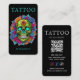 Professional tattoo artist business card featuring a bold floral skull tattoo design. Perfect for tattoo studios, tattooists, and tattoo shops seeking artistic, modern, and eye-catching branding.
