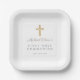 Personalised Modern Taupe Religious Cross First Communion Paper Plates.
