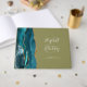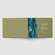 This elegant wedding guest book features a teal blue watercolor agate design trimmed with faux gold glitter. Easily customise the ivory text on an olive green background, with the names of the bride and groom in whimsical handwriting calligraphy over a large ampersand. Add additional text of your choice to the front and spine.