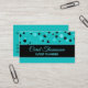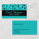 Modern chic business card done in teal with graphics of black and light teal dots and a black text area. Personalise the text, on the front and back of the card, to suit your business needs.