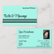 YOUR FAVORITE - Make a lasting impression with this modern and simply business card design featuring stylish black stripes on a plain light teal background with (employees-) photo.