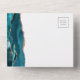 The left-hand edge of this elegant modern all-in-one wedding invitation and RSVP features a teal blue watercolor agate border trimmed with faux rose gold glitter. The customizable text combines charcoal gray handwriting, copperplate and italic fonts on a white background. The return address appears on the outside flap and the reverse side of the detachable RSVP card.