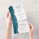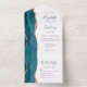 Modern Teal Blue Rose Gold Agate Wedding All In One Invitation