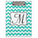 Modern Teal Chevron Monogram Initial Clip Board