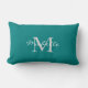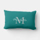 Modern teal coloured personal monogram and name lumbar cushion
