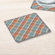 Modern Teal Dark Blue Orange White Plaid Pattern Square Paper Coaster