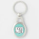 Modern Teal Glitter Chevron Zig Zag Stripe Monogram Initial Key Chain