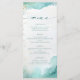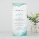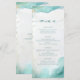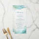 These modern abstract beach wedding menu cards feature teal and gold alcohol ink splashes for a subtle coastal vibe. Perfect for summer seaside and tropical beach destination weddings.