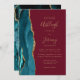 Modern Teal Gold Agate Burgundy Wedding Invitation
