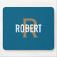 Modern design with teal background, a modern gold monogram with white name. Personalize with your name and initial.