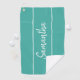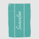 Modern Teal Green Hand Lettering Script Monogram Golf Towel