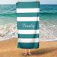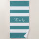 Personalised Modern Teal Green Striped Beach Towel.