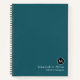 Modern notebook features a stylish design in a trendy teal colour palette with black with white accents. Custom name presented in the lower right-hand corner in stylish simple font with a complimentary minimal monogram medallion.