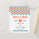 Modern Teal & Orange Chevron & Lovebirds Wedding Announcement Postcard