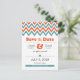 A modern & minimalist invitation suite with teal and orange chevron stripes and cute love birds.