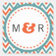 A modern & minimalist invitation suite with teal and orange chevron stripes and cute love birds.