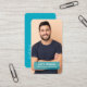 Make a lasting first impression with this modern teal photo QR code design. Featuring a clean minimalist layout, personal photo, and scannable QR code for instant connections, this stylish design is perfect for professionals, creatives, and entrepreneurs. Easily customize with your name, contact details, and social links to create a polished and memorable networking essential.
