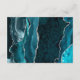 The left-hand edge of this elegant modern wedding details enclosure card features a teal blue watercolor agate border trimmed with faux silver glitter. The title appears in handwriting script, with customisable text below in silver grey copperplate font on a purple background. The reverse side features a matching teal blue and silver agate design.