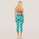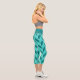 These modern capri leggings feature a trendy geometric herringbone pattern in teal and turquoise.