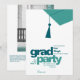 A minimalist teal tassel graphic and bold “grad party” headline pairs with a clean photo layout and contemporary design for a stylish, editorial look. Fully customizable colors, text, and photo make it easy to create a unique invitation for your graduate.