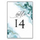 Modern Teal Watercolor Moss Agate BarefootBride™ Table Number