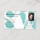 Make a lasting impression with this stylish and outstanding teal, white and black coloured business card design with modern cool fonts, monogram and (employees-) photo.