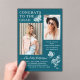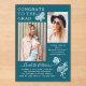Modern Teal White Butterfly Photo Graduation Party Acrylic Invitations features the simple text "Congrats to the Grad" accented with a flower and butterflies with two of your favourite photos and personalised with name and graduation party details in elegant white script typography. Personalise by editing the text in the text boxes provided and adding your favourite photos. Designed by ©2023 Evco Studio www.zazzle.com/store/evcostudio