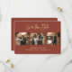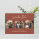 Elegant personalised terracotta and gold wedding photo save the date cards with a modern faux gold foil script title. Easily personalise this terracotta save the date with your images and wedding details including a wedding website.