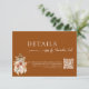 This modern wedding details card features a rich terracotta background (#944509), complemented by delicate boho botanicals and refined typography. Include a scannable QR code to give guests instant access to your wedding website, schedule, registry, and more. This card is perfect as an insert in your wedding invitation suite — functional, elegant, and fully customizable. Mix and match with other terracotta floral stationery pieces for a cohesive, on-trend look. Ideal for rustic, boho, autumn, or minimalist weddings.