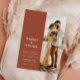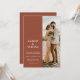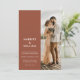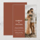 A simple modern wedding invitation featuring your personalised photo, bold typography names, terracotta rust colour and minimalist design.