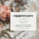 This ultra modern, black and white engagement party invitation features bold typography with a mix of standard and italic serif text. A simple and elegant look that will work perfectly with their modern wedding style.