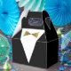 Create your own unique tuxedo favour boxes for a special occasion using a simple DIY template that can be easily personalised with an elegant thank you message, name or other custom text. The classy art by Raphaela Wilson depicts a modern black tux and gold bow tie. These thank you favour boxes are great party supplies for weddings, a bachelor party, a 40th / 50th birthday party, engagement, as well as other formal events. Should you personalise the editable template further, you can change the suit, shirt and bow tie colour to any hue of your choice to match the party theme perfectly (ie. silver, red, etc.). Even select the calligraphy script and change the typography to what best suits your style. Enjoy! Category: black tuxedo party favours for candy; tux favour boxes for birthday parties; and wedding favour boxes for guests / groom / best man. Sophisticated gold and black party theme colour palette: faux metallic yellow champagne gold, charcoal black, and white.