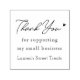 Custom-designed stamp for small business featuring modern hand lettering with personalised thank you message and business name.