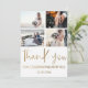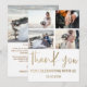 Modern minimalist thank you card. Featuring large elegant calligraphy in faux gold leaf and spaces to add 4 of your special wedding photos. Easy and fun to customise to create your own unique 'Thank you' cards.