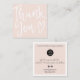 Modern minimalist and stylish white and pastel blush pink business order thank you brush script font with a heart. Add your social media. With an elegant signature script font, all the colours are editable , add your logo.