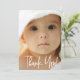 Personalisation is made easy with this card, allowing you to customise the front with your baby's photo, birth details, and name. The modern design features elegant script typography for the word "Thank You," adding a touch of sophistication to the card.