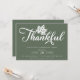 Celebrate Thanksgiving with your loved ones with this stylish and elegant invitation. The invitation features a white script calligraphy font saying "thankful" with an oak leaf set on a forest green background. The perfect way to invite your guests to a memorable evening of food, fun, and fellowship.