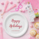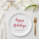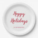 Modern Thick Red Script Happy Holidays Christmas Paper Plate