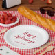 Modern and simple paper plate featuring "Happy Holidays" in a thick red script typography over a white background. These Christmas paper plates are perfect for adding a personal touch to your holiday party. Coordinating items available in the complete collection. If you need assistance finding the collection, feel free to send me a message.
